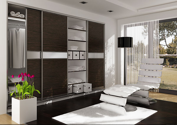 Swinging Doors are mostly used when tracks for sliding doors are technically impossible to install. Another space saving solution for closets.