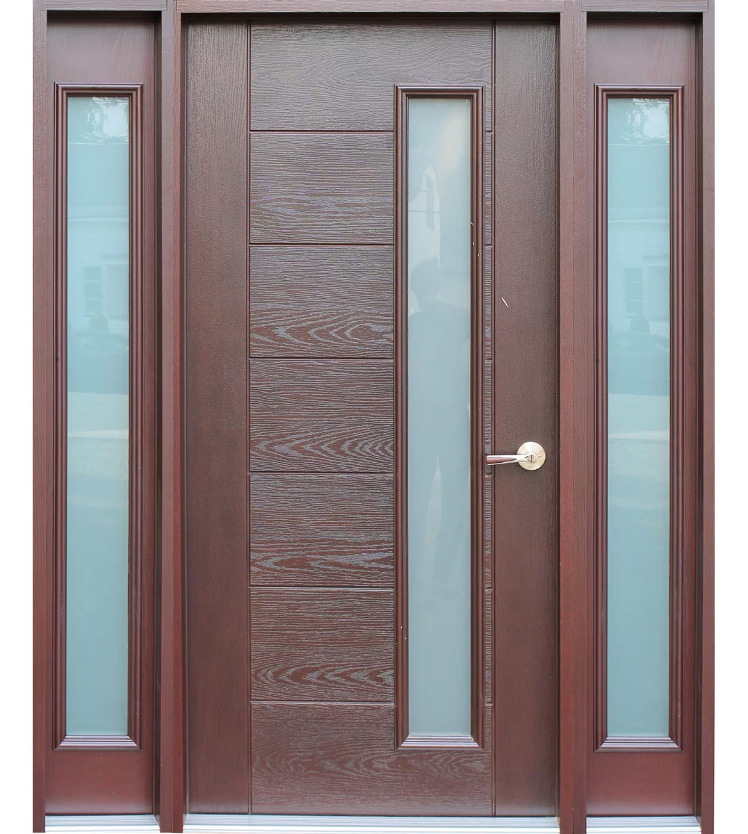 Fiberglass Mahogany Stained Entry Door with Sidelightes