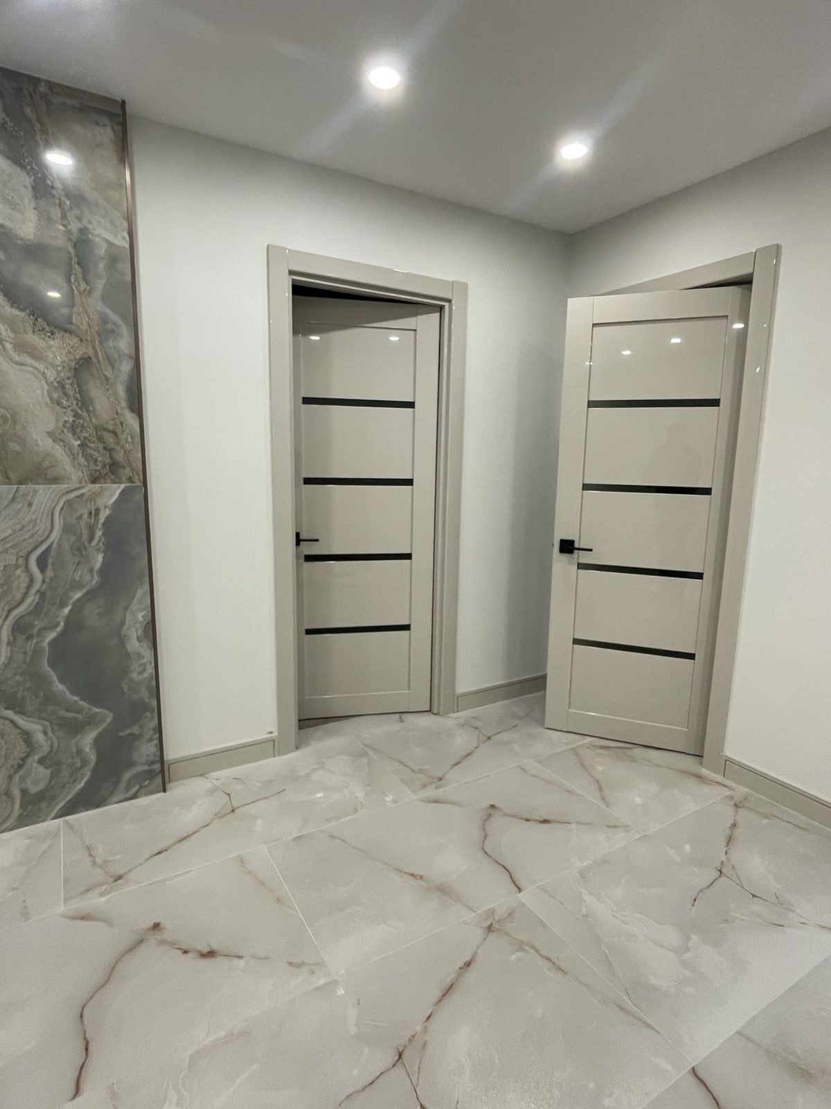 “Eldorf” – modern interior door features stile and rail design. Core is made of engineered wood – a combination of pine core and a thin layer of MDF. Such design makes it stable during different humidity conditions. Compared to a completely solid wood door, it does not swell or contract as much as the other. Finish of the door is eco-friendly laminate featuring texture and color of a real wood.