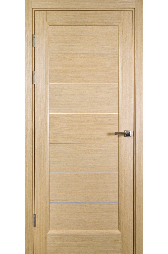 “Lagoon” – modern interior door features stile and rail wood construction. Stiles and rails are made of engineered wood – a combination of pine core and a thin layer of MDF. Such design makes it stable during different humidity conditions. Compared to a completely solid wood door, it does not swell or contract as much as the other. Finish of the door is eco-friendly laminate featuring texture and color of a real wood.