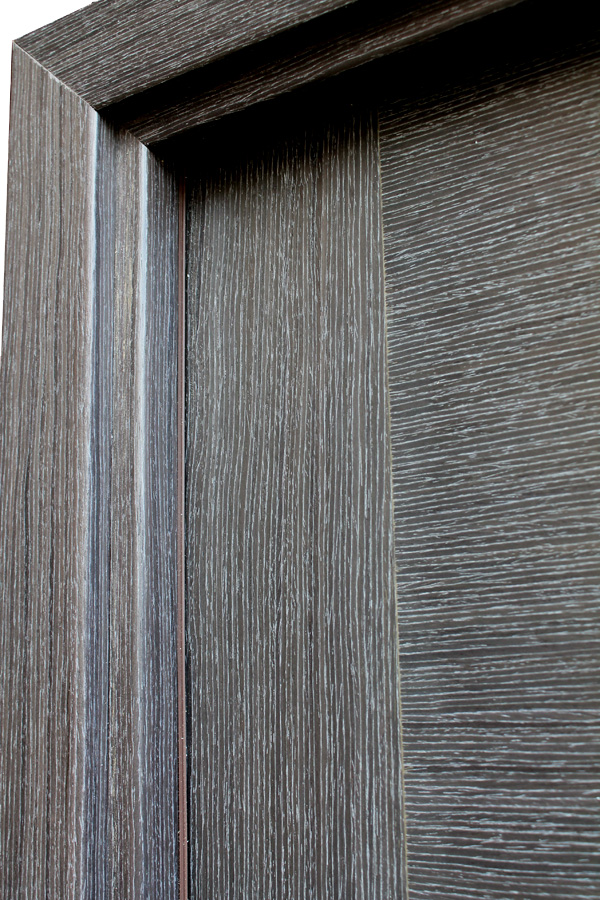 “Milano” – modern interior door features stile and rail wood construction. Stiles and rails are made of engineered wood – a combination of pine core and a thin layer of MDF. Such design makes it stable during different humidity conditions. Compared to a completely solid wood door, it does not swell or contract as much as the other. Finish of the door is eco-friendly laminate featuring texture and color of a real wood.